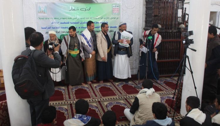 نظم اليوم الخميس مكتب الأوقاف والإرشاد ووحدة الثقافة القرآنية بمحافظة ذمار حفل تخرج الدفعة السادسة عشر من طلاب الجامع الكبير بالتزامن مع قدوم الذكرى السنوية للشهيد تحت شعار “شهداؤنا عظماؤنا”