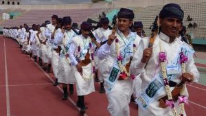 نظم فرع الهيئة العامة للزكاة بالمحافظة اليوم عرس جماعي لـ244 عريساً وعروس، من أبناء الشهداء والجرحى والأسرى المحررين والأيتام والمحتاجين وذوي الاحتياجات الخاصة وأحفاد بلال بالمحافظة تحت شعار “معاً لتحقيق التكافل الاجتماعي“.