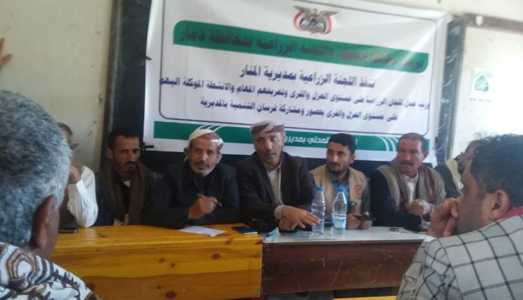 وفي وقت سابق شُكلت لجان زراعية على مستوى العزل والقرى ضمت 140 فرد من أبناء المديرية للنهوض بالجبهة الزراعية وتدريب 9 من فرسان التنمية بذات المديرية