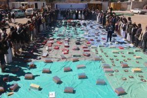 حضر تقديم القافلة مدير مديرية ذمار محمد السيقل ومسؤل أنصارالله بمدينة ذمار عبدالكريم جبهان .