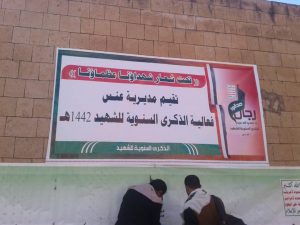 دشنت مديرية عنس اليوم فعاليات الذكرى السنوية للشهيد 1442هجرية بإقامة فعالية ثقافية وخطابية وافتتاح معرض الصور لشهداء مديرية عنس