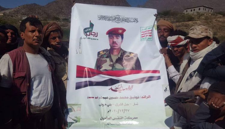 تشييع جثمان الشهيد المجاهد الرائد توفيق محمد حسين عُبيد بمديرية جبل الشرق بذمار.