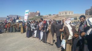 وقفة احتجاجية مسلحة بمديرية ضوران لإستمرار الصمود ورفد الجبهات .