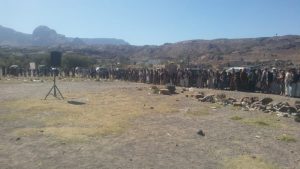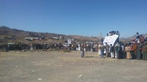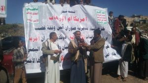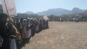 وخلال الوقفه استنكر المشاركون في بيانهما بحضور مدير عام المديرية رئيس المجلس المحلي العقيد محمدغالب المهدي وعدد المشائخ والعقال ومدراء المكاتب التنفيذية وعدد من الشخصيات الاجتماعية قرار الإدارة الأمريكية إدراج حركة أنصار الله في قائمة الإرهاب.