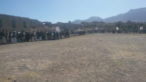 نظمت اليوم وقفة احتجاجية مسلحة بمديرية ضوران آنس مركز المديرية بمحافظة ذمار، للتنديد بإستمرار جرائم العدوان السعودي الأمريكي الغاشم على الشعب اليمني ورفضاً لإعلان أنصارالله في قائمة الإرهاب تحت شعار “أنصارالله منا وفينه”
