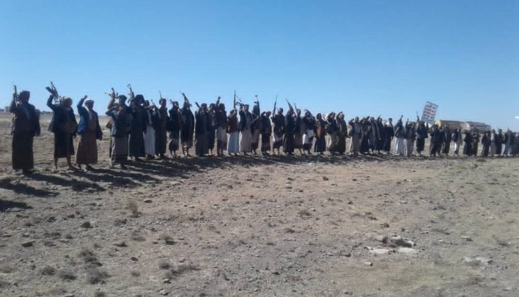وقفة احتجاجية بمخلاف وادي الحار بمديرية عنس استنكارا لقرار أمريكا بتصنيف أنصار الله جماعه إرهابية
