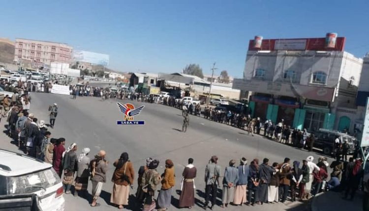 نظم أبناء مديرية الملاجم بمحافظة البيضاء اليوم،وقفة تنديداً بقرار الإدارة الأمريكية تصنيف أنصار الله منظمة إرهابية.