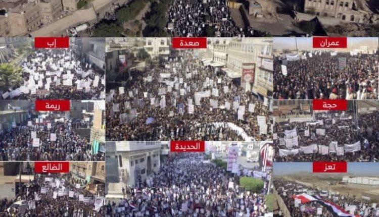 ملايين اليمنيين يخرجون في مسيرات “العدوان والحصار الأمريكي جرائم إرهابية”