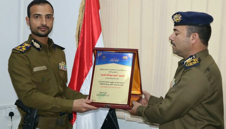 كرم وزير الداخلية اللواء عبدالكريم امير الدين الحوثي، مدير أمن محافظة ذمار، العميد احمد عبدالله الشرفي، تقديرا لجهوده المتميزة والمثابرة في عمله الأمني.