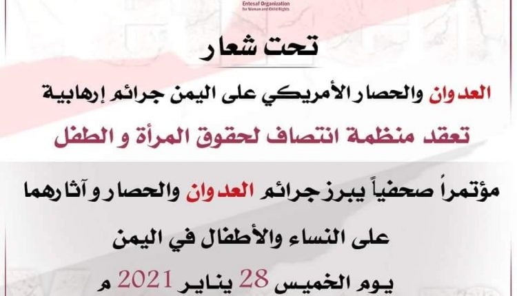 تعقد منظمة انتصاف لحقوق المرأة والطفل مؤتمرا صحفيا يبرز جرائم العدوان والحصار وآثارهما على النساء والأطفال في اليمن