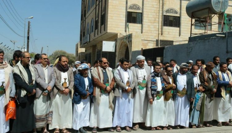نظمت شركة النفط اليمنية، اليوم الجمعة، وقفة أمام مكتب الأمم المتحدة بصنعاء تحت شعار “القرصنة على سفن الوقود جريمة شاملة.. بشراكة أممية كاملة”، تنديدا باستمرار احتجاز سفن المشتقات النفطية من قبل تحالف العدوان.