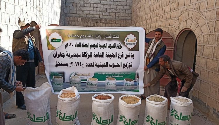 تدشين توزيع زكاة الحبوب في مديرية جهران بذمار.