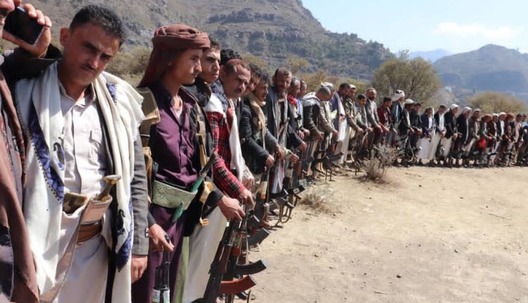نظم اليوم الاربعاء لمديرية ضوران وقفة إحتجاجية مسلحة ساخطة وغاضبة إزاء تعسف دول العدوان ومنع دخول المشتقات النفطية ومواصلة النفير العام ورفد الجبهات.