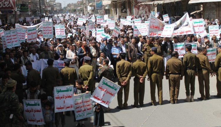 مسيرة جماهيرية بذمار تنديداً بجرائم العدوان وإحتجاز سفن الغداء والمشتقات النفطية.