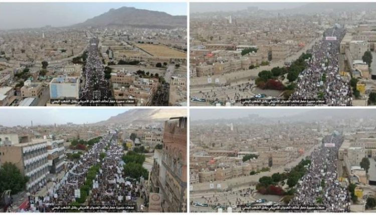 العاصمة صنعاء تشهد حشدًا جماهيريًا كبيرًا رفضًا لحصار التحالف الأمريكي على الشعب اليمني