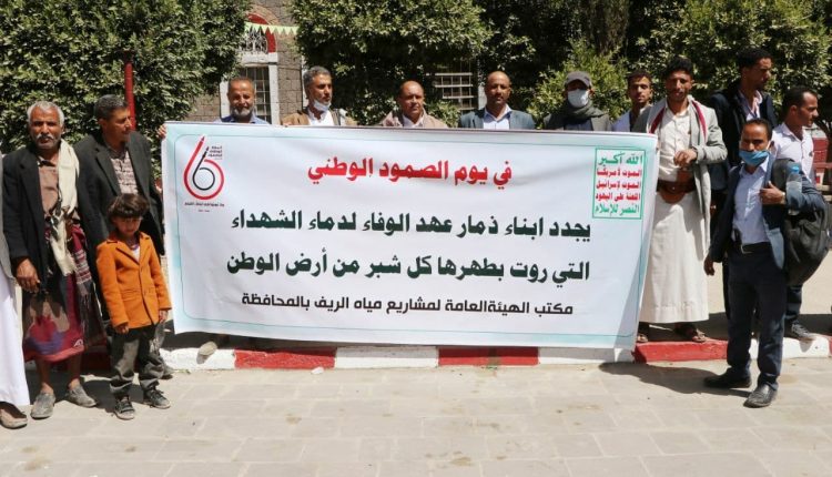 نظم منتسبو مكاتب الصحة العامة والسكان وفروع المعهد العالي للعلوم الصحية و الهيئة العامة للأوقاف والهيئة العامة لمشاريع مياه الريف و مكتب الثقافة فعالية ووقفة في ذكرى يوم الصمود الوطني.