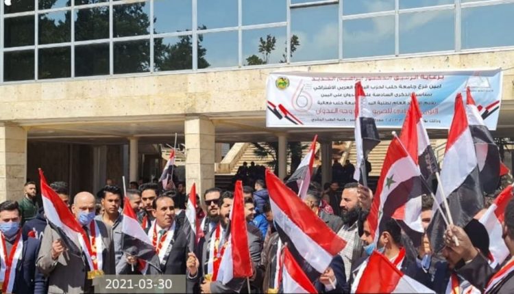 أقيمت اليوم الثلاثاء ، بمدينة حلب السورية فعاليات خطابية بمناسبة الذكرى السادسة للصمود في وجه العدوان الأمريكي الصهيوني السعودي الاماراتي الغاشم وتدشين العام السابع لمواجهة مخططات الاحتلال والتصدي لمساعي فرض الوصاية على اليمن.