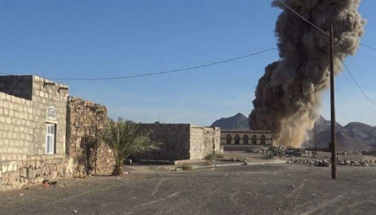 وفي الجوف شن طيران العدوان 5 غارات على مديرية خب والشعف.