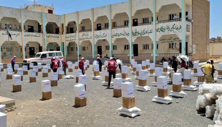 الهلال الأحمر اليمني يوزع مساعدات ايوائية وغذائية لـ 125 أسرة نازحة من مأرب إلى صنعاء