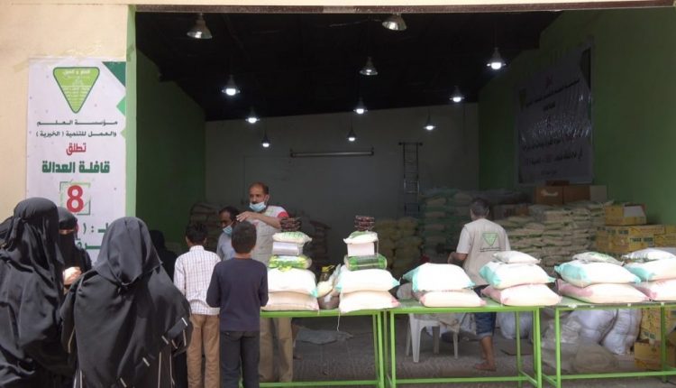 دّشنت مؤسسة العلم والعمل للتنمية اليوم توزيع سلال غذائية بأمانة العاصمة ومحافظة الحديدة ضمن قافلة العدالة الثامنة التي تنفذها المؤسسة.