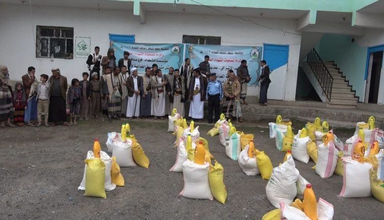 من جانبه أوضح ممثل مؤسسة الشهداء محمد الصيح، أن توزيع السلة الغذائية يستهدف 725 أسرة بمدينة ذمار، ضمن أنشطة المؤسسة لرعاية أسر الشهداء.