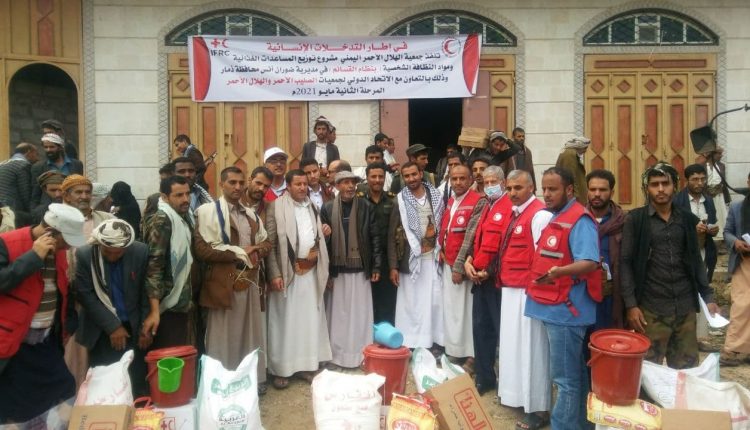 جمعية الهلال الاحمر بذمار تو زع مساعدات غذائية بمديرية ضوران.