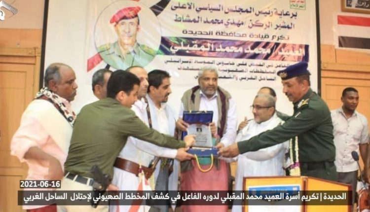 تقديراً لدوره في القبض على جاسوس الموساد .. قيادة محافظة الحديدة تكرم أسرة العميد محمد المقبلي
