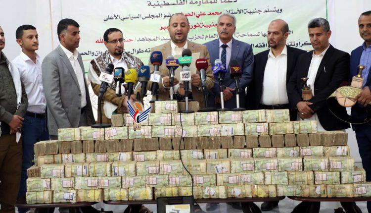 حيث سلّم مدير الإذاعة حمود شرف الدين في المؤتمر، المبلغ المالي لرئيس الملف الفلسطيني لأنصار الله رئيس اللجنة المركزية لجمع تبرعات حملة ” القدس أقرب” حسن الحمران، في حين تسلّمت إذاعة سام الجنبية من اللجنة.