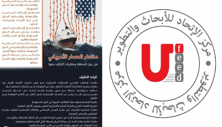 دراسة من إعداد مركز الاتحاد للأبحاث والتطوير تسلط الضوء على سياسات الهيمنة الأمريكية على دول المنطقة وحركات المقاومة ومخاطر الحصار الاقتصادي وطرق مواجهته، وآليات التكيّف مع المخاطر التي بإمكان الدول والكيانات المستهدفة القيام بها.