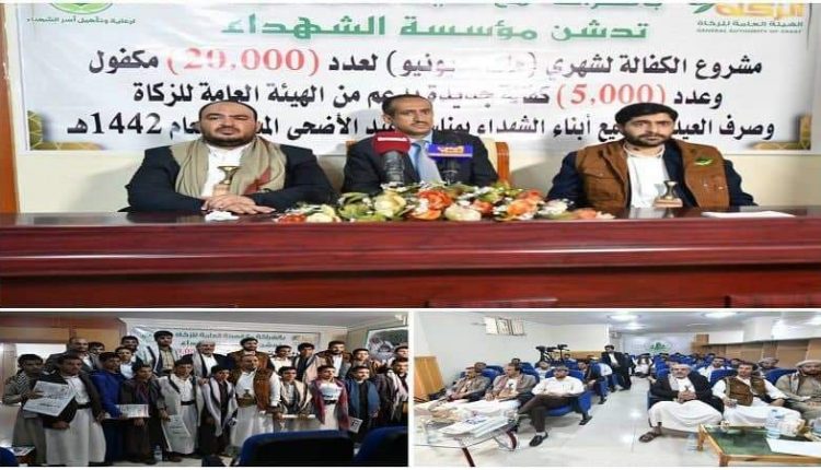 دشنت مؤسسة الشهداء بالشراكة مع الهيئة العامة للزكاة اليوم الاثنين، مشروعي كفالة 25 ألف من أبناء الشهداء وصرف العيدية لكافة أبناء الشهداء وذلك بحلول عيد الأضحى 1442هـ.