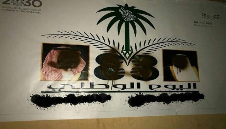 وبحسب تغريدات متداولة، قام سعوديون على تشويه جداريات الملك سلمان ونجله وطمس صورهم، عشية احتجاجات مقررة غدا الاثنين الموافق ليوم عرفة.