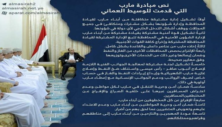 ووصف مشايخ مارب المبادرة بالواقعية والمنصفة لأبناء المحافظة خاصة وللشعب عامة.