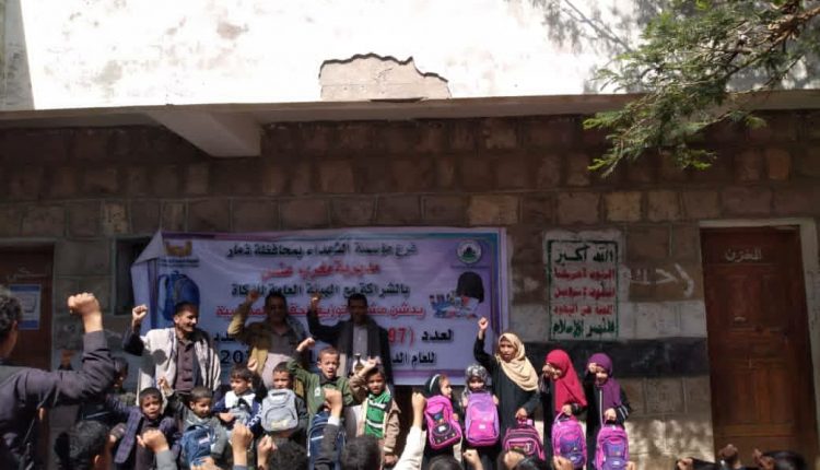 وخلال التدشين الذي حضرة نائب مدير فرع الهيئه العامه للزكاه بالمديرية الاستاذ زيد علي الموشكي ومندوب الشهداء بالمديرية توفيق الموشكي ومدير الرقابة بمكتب التربية والتعليم عزيز السماوي أكد مشرف عام المديرية بأن تدشين المشروع يأتي عرفانآ بتضحيات الشهداء الذين قدموا ارواحهم في سبيل الله للدفاع عن الدين والارض والعرض من اعداء الامه ووفاء” للقيم والمبادئ التي ضحى من أجلها الشهداء