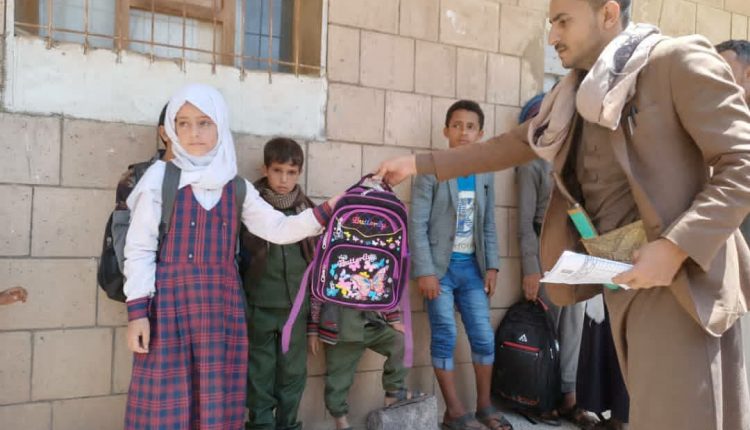 تدشين توزيع الحقيبة المدرسية لأبناء الشهداء بمديرية عتمة.
