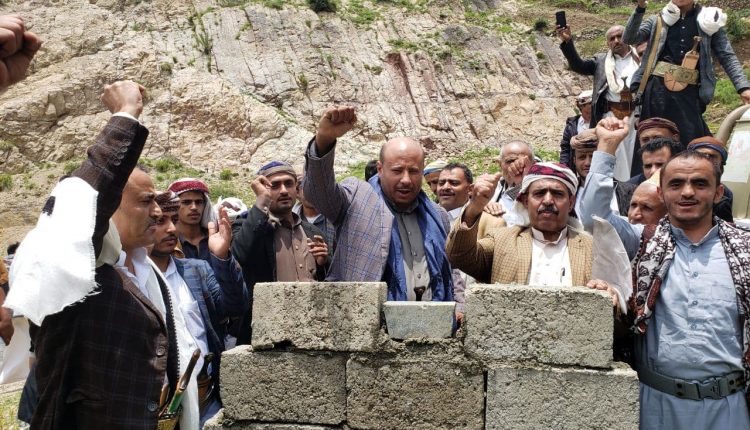 الوكيل العمدي يضع حجر أساس مشروع شق طريق بمديرية وصاب العالي.