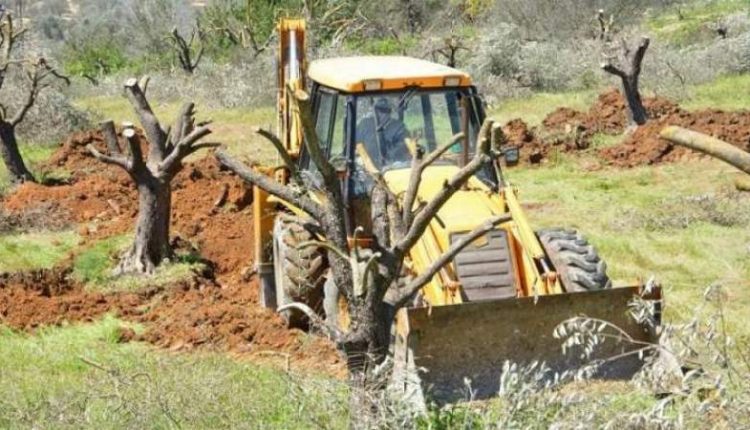 العدو يجرف أراضي ويقتلع 400 شجرة زيتون وعنب شرق الخليل