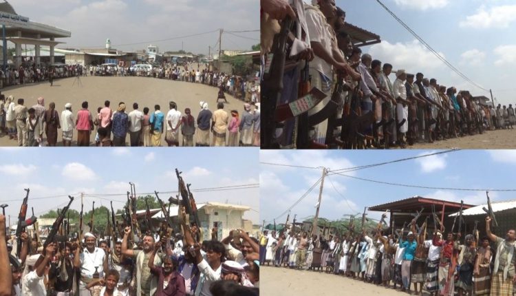 وقفة قبلية مسلحة لأبناء الدريهمي بالحديدة إعلانا للنفير ورفدا للجبهات