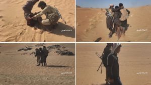 الإعلام الحربي يوزع مشاهد تطهير التبة الرملية والسلسلة الجبلية المطلة على معسكر الخنجر بالجوف (صور)