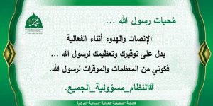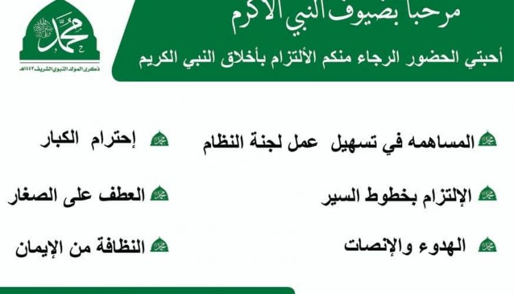 وأكدتاللجنة على ضرورت الانصات والهدوء اثناء الفعالية الذي يدل على توقيرك وتعظيمك لرسول الله …فكوني من المعظمين والموقرين لرسول الله.