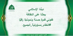 وقالت اللجنة لكل من كان رسول الله قدوتها وأسوتها الحسنة أتركي مكانك نظيفا فديننا الاسلامي يحثنا على النظافة