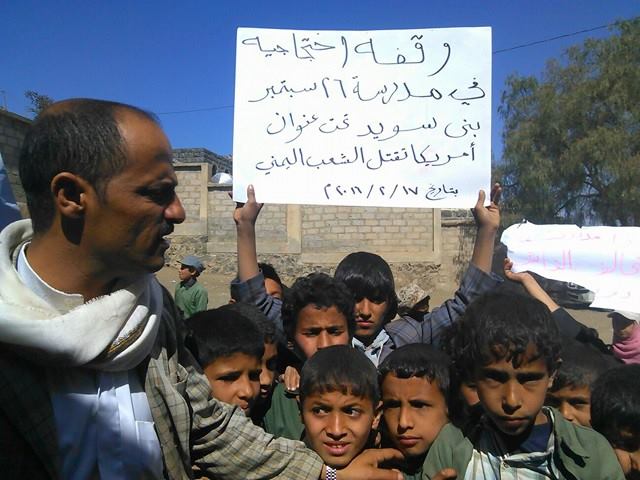 تحت شعار ” أمريكا تقتل الشعب اليمني “نظم طلاب وطالبات ومعلموا 26 سبتمبر بني سويد مديرية عتمه بمحافظة ذمار صباح اليوم الأربعاء وقفة احتجاجية أعلنوا من خلالها رفضهم للعدوان الأمريكي السعودي الصهيوني على اليمن وكذلك الحصار الغاشم المفروض منذ ما يقارب العام.