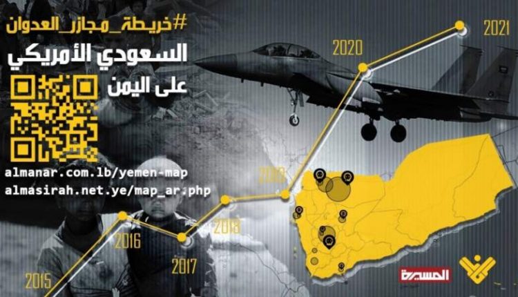 بتعاون بين المسيرة والمنار .. الخريطة التوثيقية لمجازر العدوان على اليمن تنطلق مساء اليوم
