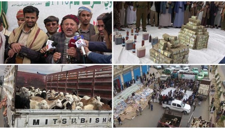 واحتوت القافلة على مبالغ نقدية 100 مليون ريال، وعينية بقيمة 50 مليون ريال تنوعت بين مواد غذائية وملابس شتوية، و350 رأس من الأغنام وخمسة رؤوس من الأبقار.