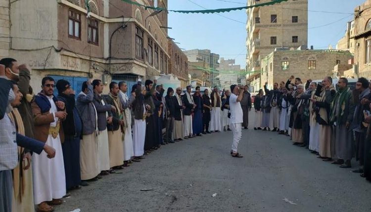 صنعاء.. وقفة بمديرية الثورة تندد بإعدام عشرة أسرى في الساحل الغربي