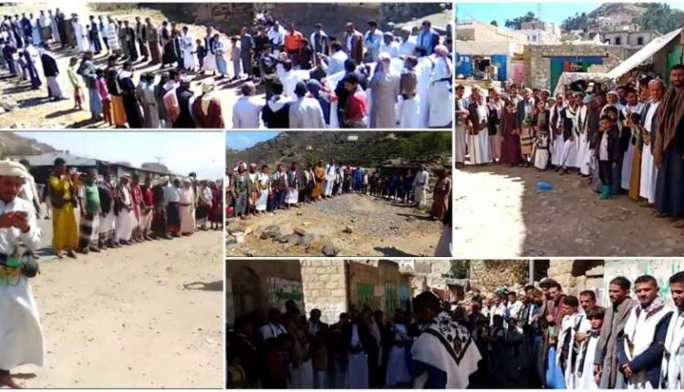 الوقفات الشعبية التي أقيمت بمديريات بلاد الطعام وكُسمة والجعفرية نددت بالتصعيد الأمريكي على مختلف المحافظات واستمرار الحصار على أبناء الشعب اليمني.