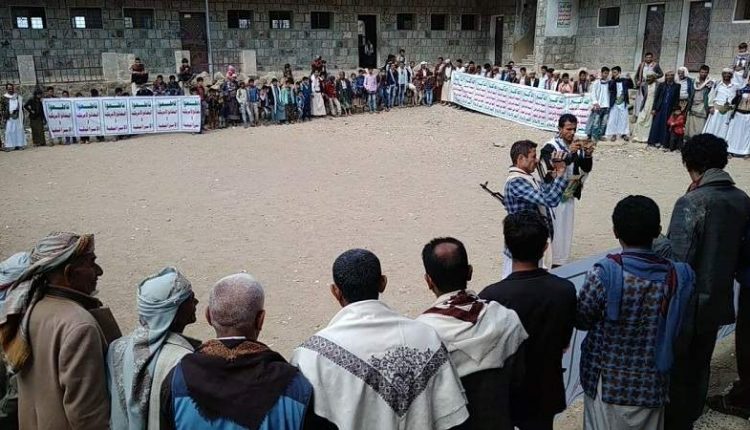 وقفة شعبية بمديرية الجبين بريمة تنديداً بجريمة قتل الأسرى