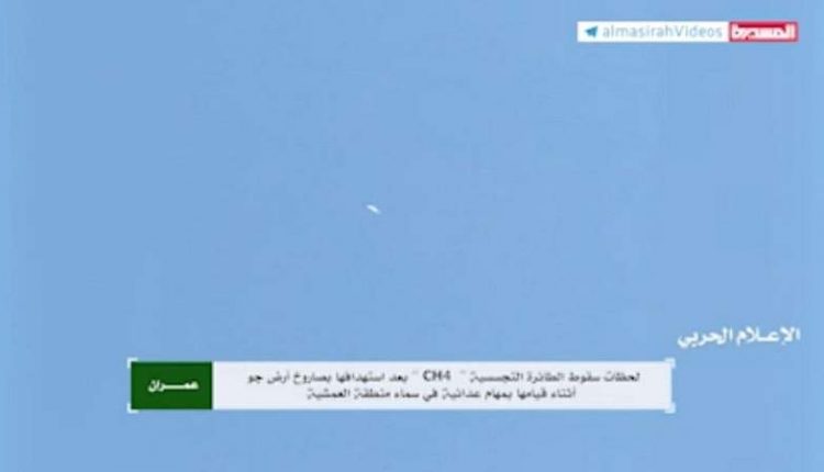 وأوضح سريع أن عملية إسقاط الطائرة المعادية تمت “بصاروخ أرض جو لم يتم الإعلان عنه بعد، وذلك أثناء قيامها بأعمال عدائية في أجواء منطقة العمشية بمحافظة عمران.
