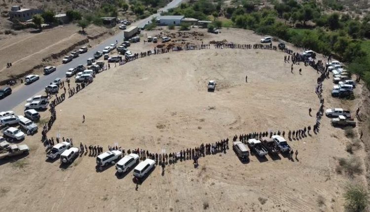 وقفة شعبية حاشدة بالعدين في إب للتنديد باستمرار جرائم العدوان والتصعيد الأمريكي