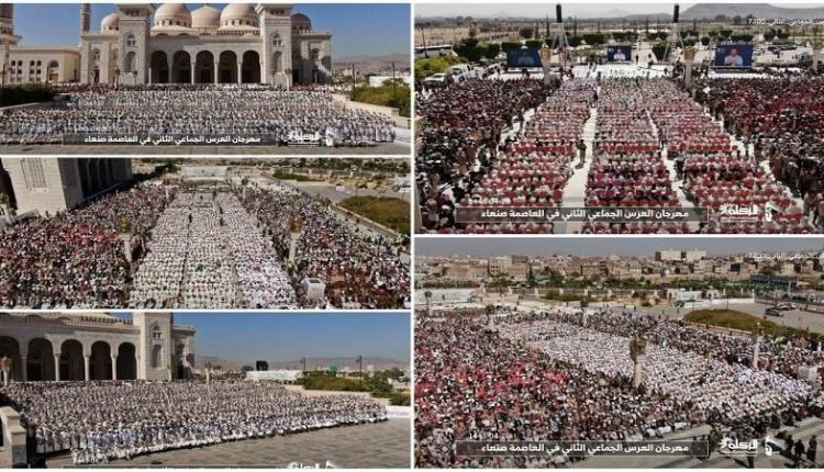 احتفى 7200 عريس وعروس، اليوم الخميس، بإكمال نصف دينهم في العرس الجماعي الثاني الأكبر من نوعه، الذي نظّمته الهيئة العامة للزكاة في العاصمة صنعاء.
