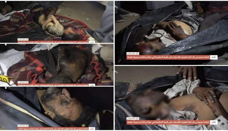 وأفاد مصدر في السلطة المحلية ومدير عام مقبنة عن سقوط 18 شهيدا و8 جرحى بينهم أطفال في جريمة العدوان بقرية الحكيمة في عزلة براشة بمديرية مقبنة.